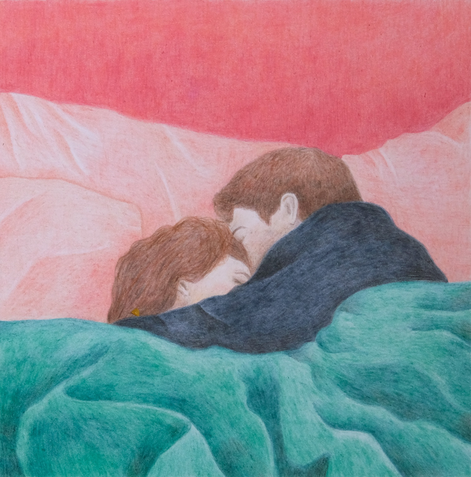 Illustration aux crayons de couleurs, projet personnel, 2025.