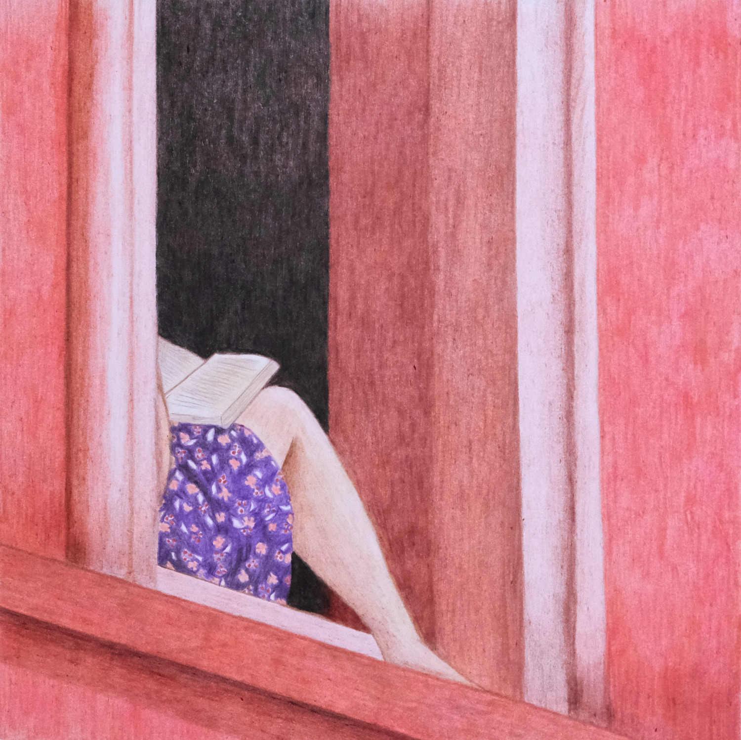 Illustration aux crayons de couleurs, projet personnel, 2025.
