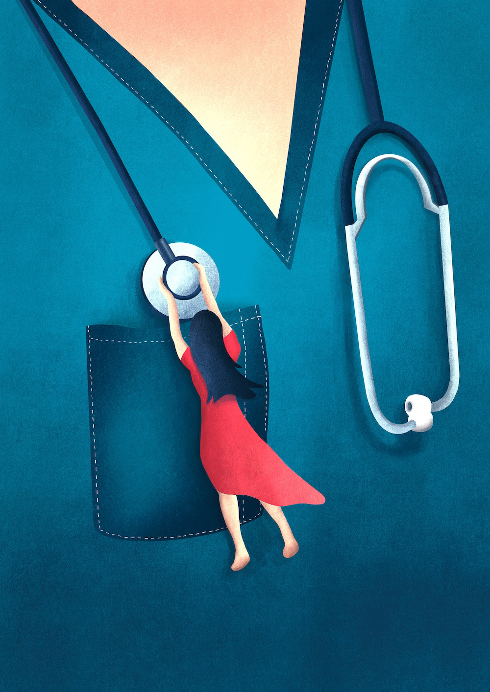 Illustration réalisée pour l'affiche de Mediavivant pour l'enquête sur scène sur les femmes discriminées par la médecine.